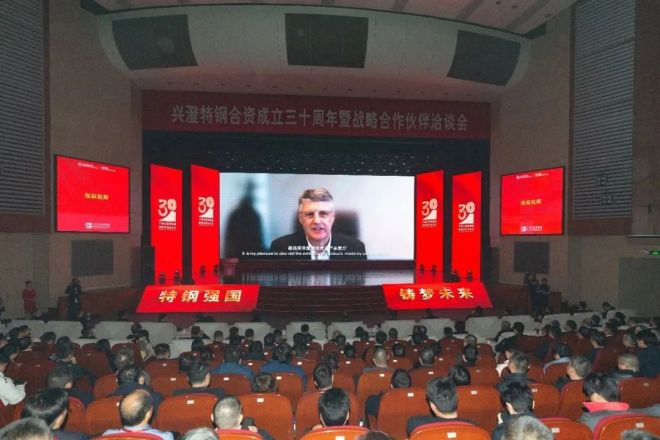 世界鋼鐵協會總幹事埃德溫·巴鬆、中信泰富特鋼多位老領導以視頻形式發來祝賀。中國工程院院士翁宇慶、幹勇,中國鋼鐵工業協會、中國鍛壓協會、中國汽車工業協會、中國軸承工業協會、冶金工業信息標準研究院等行業協會和單位,以及中信重工、中冶京誠等國內外合作單位,北京科技大學、東北大學、上海大學等知名院校發來賀信祝賀。