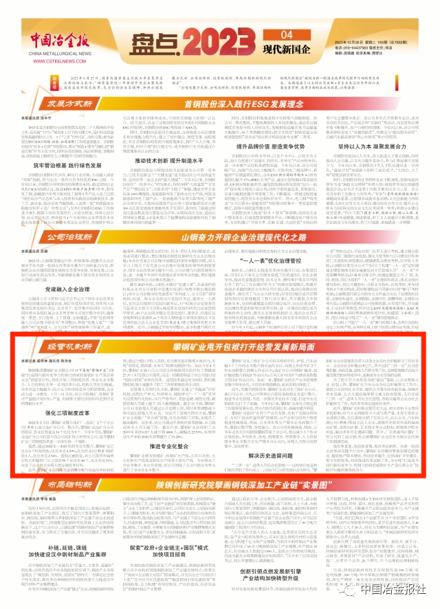 【盤點2023 現代新國企】經營機製新 攀鋼礦業甩開包袱打開經營發展新局麵