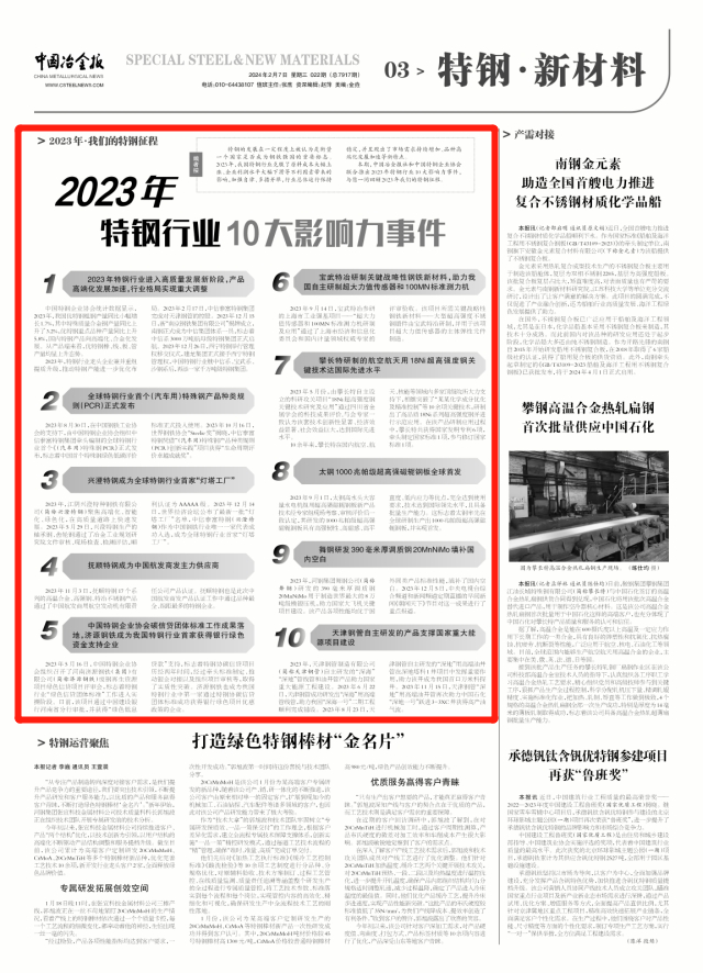 2023年特鋼行業10大影響力事件