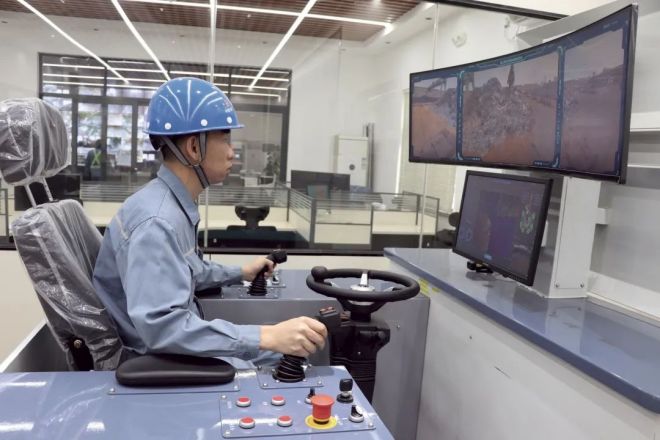 員工正在運用該係統遠程操控抓鋼機。(企業供圖)