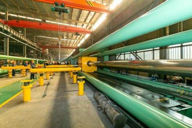 嚴格工藝把關是關鍵。對於直徑在273毫米至508毫米的無縫鋼管,德新鋼管采用帶坯委外加工方式。根據訂單委托最優機組軋製原管,德新鋼管再自行完成熱處理、精整和後道工序。對於直徑大於508毫米、徑壁比大於25的大口徑薄壁無縫鋼管,德新鋼管委托寶鋼、天淮、誠德等企業穿軋定徑後,再采用中頻熱擴工藝擴製,結合冷拔、熱處理、精整等能力最終完成成品。“這種創新的生產方式,充分利用德新強大的熱擴、冷拔、熱處理和精整能力,實現了‘鋼坯—原管—成品’產品全鏈質量管控,確保成品鋼管長度長、品質佳,部分產品因采用高等級鋼坯加工,成為名副其實的‘超標管’;同時,有效縮短原料采購周期,滿足客戶交貨期要求,最快可30天內快速交貨。”陳冬介紹道。