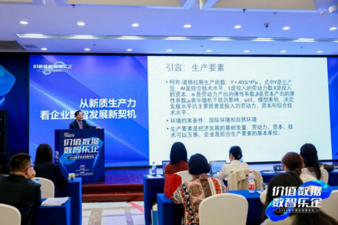 王大樹從經濟學的視角切入,以幽默易懂的講解做出《從新質生產力看企業數智發展新契機》的報告。他指出,今年兩會新質生產力已經成為熱詞,正如習近平總書記所強調,新質生產力是擺脫傳統經濟增長方式、生產力發展路徑的一種新動能,但在企業數智化發展中,數據應用仍然存在諸多問題,通過“數據要素×”行動,推動重點領域的數據要素與勞動力、資本、技術等要素協同,加快多元數據融合,才能從根本上形成和壯大新質生產力。