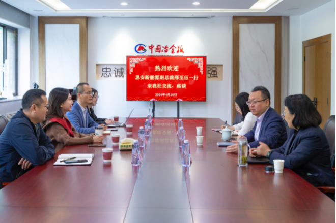 4月30日,思安新能源股份有限公司副總裁邢至玨一行到訪中國冶金報社,與中國鋼鐵工業協會副秘書長,中國冶金報社黨委書記、社長範鐵軍進行座談交流,雙方就能源技術助力鋼鐵行業綠色低碳發展的話題展開討論。