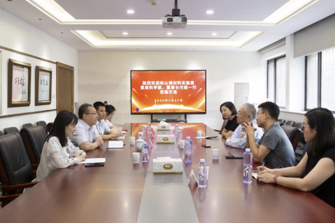 5月27日,鬆山湖材料實驗室首席科學家、董事長付超一行到訪中國冶金報社,與中國鋼鐵工業協會副秘書長,中國冶金報社黨委書記、社長範鐵軍就鋼鐵行業發展前景、產業技術協同創新,推進成果轉化,促進行業高質量發展等方麵進行了座談交流。
