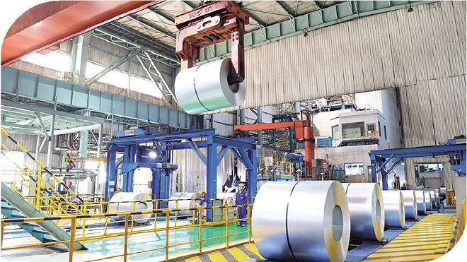 圖為本鋼浦項鍍鋅產線生產的產品正下線。