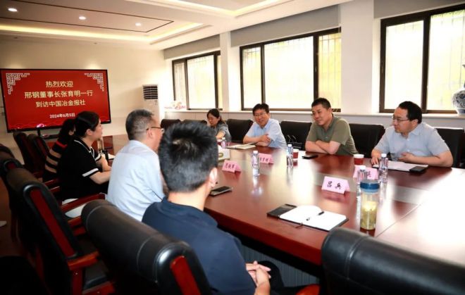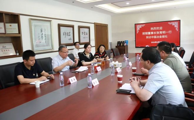 6月5日下午,邢台鋼鐵有限責任公司董事長張育明一行到訪中國冶金報社,中國鋼鐵工業協會副秘書長,中國冶金報社黨委書記、社長範鐵軍熱情歡迎張育明一行的到來,雙方進行了座談交流。
