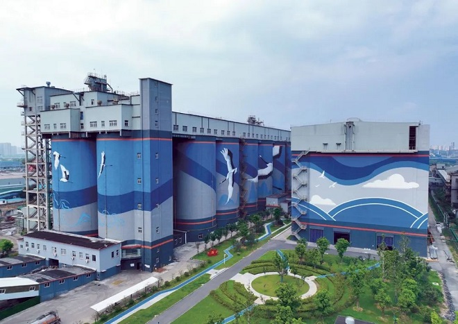 圖為南鋼智能化的煤、焦筒倉。