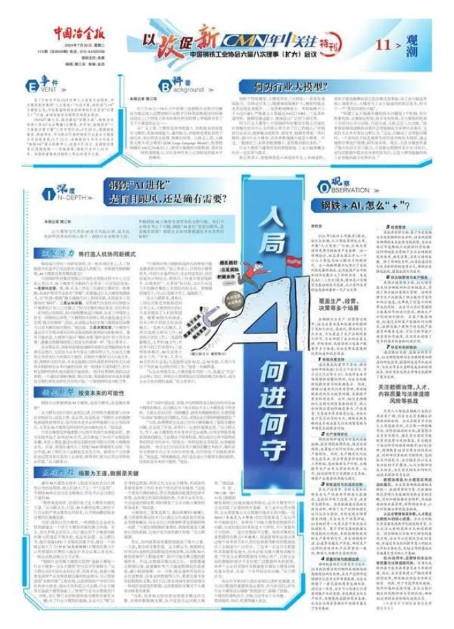 叢力群告訴《中國冶金報》記者,任何技術都需要與實體經濟相結合,這是大勢、是必然,也是機會。“鋼鐵行業積極擁抱新趨勢值得肯定,因為技術進步必將伴隨著行業應用的深化,尤其是AI大模型這種劃時代的突破性技術。”他說道。