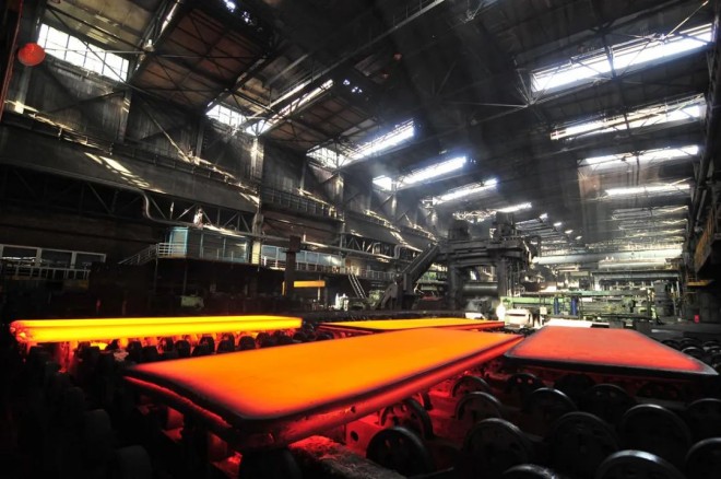 河he鋼gang集ji團tuan舞wu鋼gang公gong司si擁yong有you兩liang條tiao技ji術shu先xian進jin的de雙shuang機ji架jia寬kuan厚hou鋼gang板ban生sheng產chan線xian,配pei套tao有you國guo內nei寬kuan厚hou板ban行xing業ye優you勢shi明ming顯xian的de鋼gang錠ding模mo鑄zhu線xian及ji鋼gang板ban熱re處chu理li設she施shi,具ju有you雄xiong厚hou的de研yan發fa製zhi造zao實shi力li。圖tu為wei舞wu鋼gang寬kuan厚hou板ban生sheng產chan車che間jian。