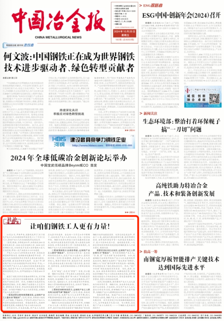 社論:讓咱們鋼鐵工人更有力量