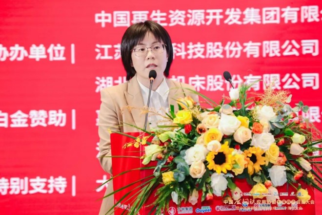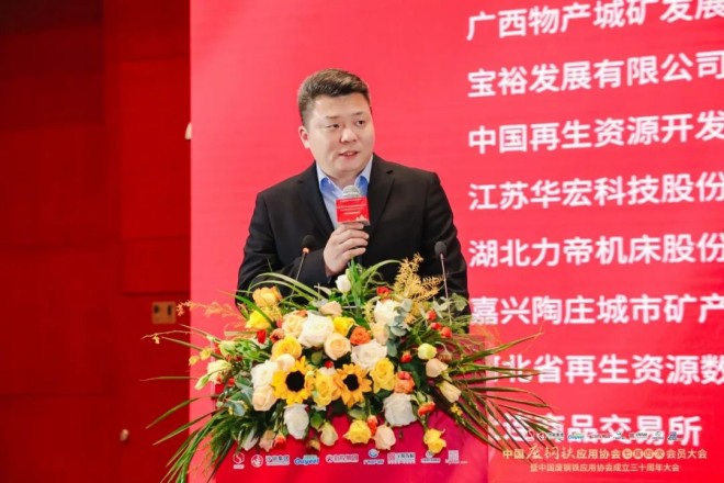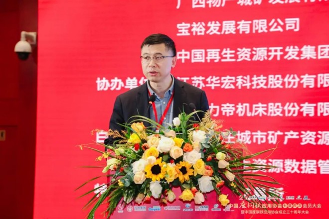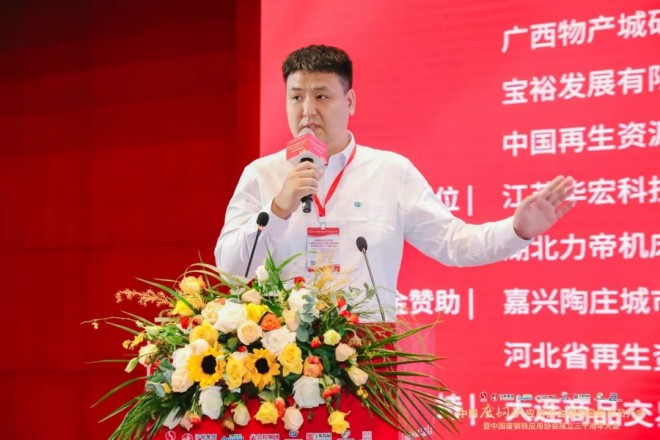 圖為董俊做《數字賦能綠色低碳循環 互聯驅動資源再生利用》主題演講