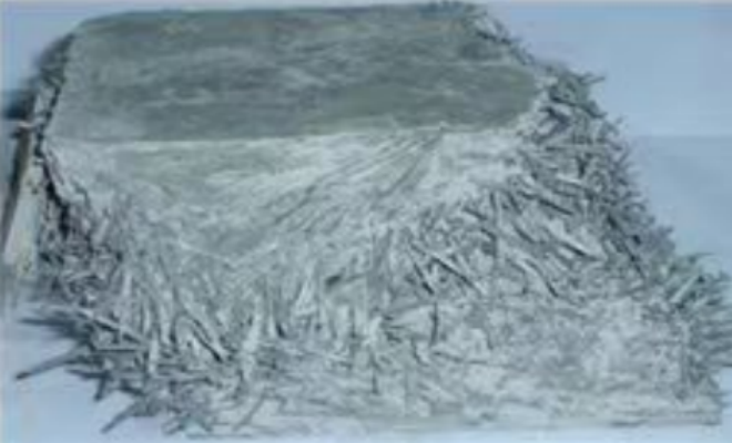爐(lu)腹(fu)爐(lu)腰(yao)預(yu)掛(gua)渣(zha)皮(pi)技(ji)術(shu)是(shi)將(jiang)金(jin)屬(shu)陶(tao)瓷(ci)材(cai)料(liao)澆(jiao)注(zhu)於(yu)冷(leng)卻(que)壁(bi)表(biao)麵(mian),在(zai)冷(leng)卻(que)壁(bi)表(biao)麵(mian)形(xing)成(cheng)一(yi)層(ceng)永(yong)久(jiu)性(xing)的(de)人(ren)造(zao)渣(zha)皮(pi)保(bao)護(hu)層(ceng)。該(gai)材(cai)料(liao)將(jiang)金(jin)屬(shu)纖(xian)維(wei)引(yin)入(ru)到(dao)非(fei)金(jin)屬(shu)澆(jiao)注(zhu)料(liao)中(zhong),將(jiang)兩(liang)者(zhe)的(de)優(you)點(dian)相(xiang)結(jie)合(he),提(ti)高(gao)材(cai)料(liao)的(de)抗(kang)折(zhe)抗(kang)壓(ya)等(deng)物(wu)理(li)指(zhi)標(biao),提(ti)高(gao)材(cai)料(liao)的(de)導(dao)熱(re)能(neng)力(li),延(yan)長(chang)爐(lu)腹(fu)、爐腰區域耐材的使用壽命。在350℃條件下,導熱係數20W/(K·m)左右;鋼纖維含量達到40%左右,不是普通的高鋼纖維澆注料(10%以下),其200℃以下抗折強度可達到35MPa~40MPa,在實驗室常規抗折檢測設備都無法將其壓彎,而折後的材料也不“折而不斷”。下圖為預掛渣皮材料的物理檢測圖。