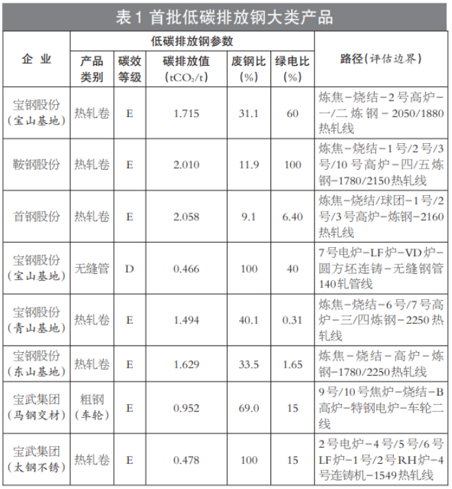 2024年10月23日,中國鋼鐵工業協會在2024年全球低碳冶金創新論壇上發布首批中國低碳排放鋼大類產品。此次發布的低碳排放鋼產品(表1)在發布EPD報告的基礎上,基於第三方認證機構數據審核,按照鋼協《低碳排放鋼評價方法》團體標準規定的原則、方法和程序進行了嚴格規範的評價。