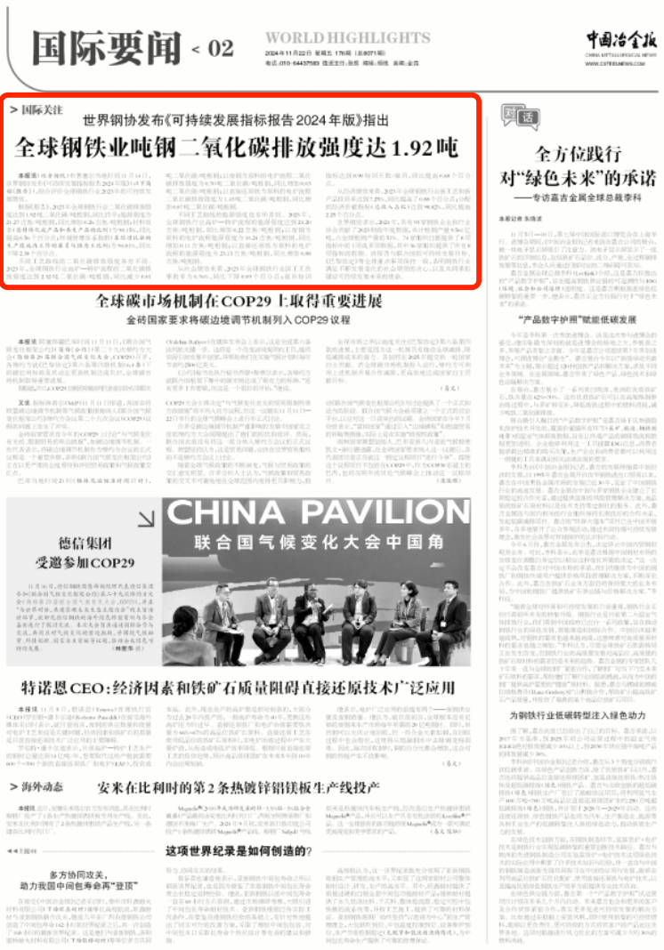 世界鋼協表示,2024年,共有93家鋼鐵企業和行業協會貢獻了2023財政年度數據,共計粗鋼產量9.561億噸,占全球粗鋼產量的51%。74家組織自願提供了8項指標中的1項或多項數據,其中36家組織提供了所有8項指標的數據。該報告與聯合國的可持續發展目標、《巴黎協定》等全球重點事項保持一致,表明鋼鐵行業滿足不斷發展變化的社會期望的決心,以及共同承擔建設可持續發展未來的使命。