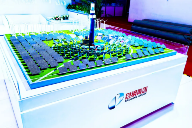 在zai包bao鋼gang集ji團tuan展zhan位wei,最zui吸xi引yin人ren目mu光guang的de就jiu是shi風feng光guang儲chu一yi體ti化hua新xin能neng源yuan項xiang目mu沙sha盤pan模mo型xing,作zuo為wei我wo國guo陸lu上shang風feng電dian鋼gang之zhi冠guan與yu最zui大da風feng電dian塔ta筒tong原yuan材cai料liao供gong應ying商shang,包bao鋼gang股gu份fen不bu僅jin風feng電dian鋼gang產chan品pin產chan量liang高gao品pin種zhong全quan,同tong時shi近jin年nian來lai不bu斷duan加jia快kuai布bu局ju光guang熱re、光伏等新能源發展賽道,用於光熱反射鏡背板和光伏支架的鋅鋁鎂鍍層產品陸續應用在國內多個新能源項目中。