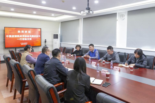 廢鋼協會副秘書長王方傑、副秘書長王萍、信息部主任王新月和中國冶金報社產業鏈發展部主任郭達清及中國冶金報社新媒體中心、谘詢研究中心相關同誌參加了座談交流。