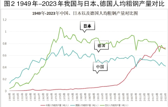 根據發達國家工業化曆程來看,人均產鋼量突破600千克,意味著該國已進入工業化成熟期,固定資產投資呈下降趨勢,與此同時,工業金屬行業進入漫長的衰退期。以德國為例,1969年人均粗鋼產量達到640千克後進入相對穩定期,自1982年起,人均粗鋼產量開始呈震蕩下降趨勢(詳見圖2)。這一階段,德國在總產能下降與行業集中度提升的趨勢下,初期普鋼、中zhong厚hou板ban鋼gang材cai產chan量liang占zhan比bi率lv先xian提ti升sheng,中zhong後hou期qi特te鋼gang產chan量liang占zhan比bi顯xian著zhu增zeng加jia。同tong時shi,出chu口kou結jie構gou逐zhu步bu轉zhuan向xiang特te鋼gang,與yu當dang前qian我wo國guo製zhi造zao業ye產chan業ye升sheng級ji的de趨qu勢shi相xiang符fu。同tong樣yang,日ri本ben1973年粗鋼產量達到峰值的1.19億噸,隨後10年波動下滑,到1982年粗鋼產量降至1億噸;1983年—2002年,日本粗鋼產量穩定在1.02億噸左右,較峰值水平僅下滑14.3%。因此,預計未來十幾年我國粗鋼產量將呈現緩慢下降態勢。