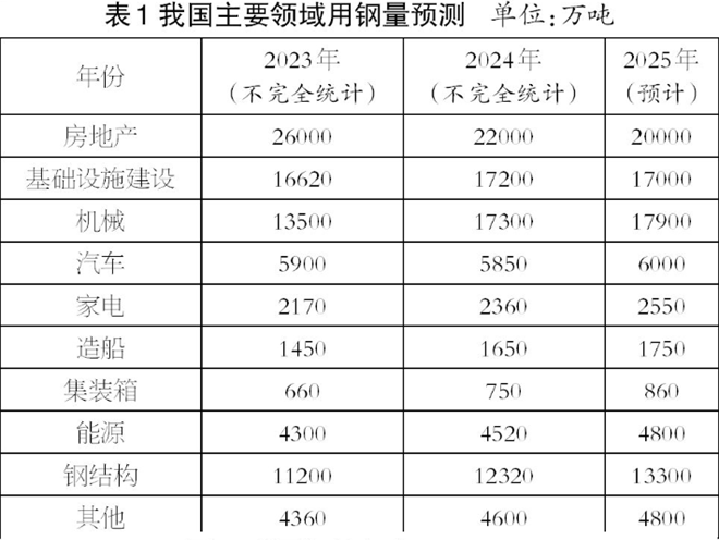 我國鋼鐵行業下遊分領域用鋼量詳見表1。