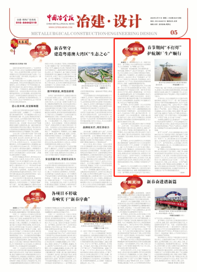 有一種年味叫堅守,有一種擔當叫責任。春節期間,中冶寶鋼用實際行動詮釋擔當,全力保障鋼廠生產順暢、運行平穩。
