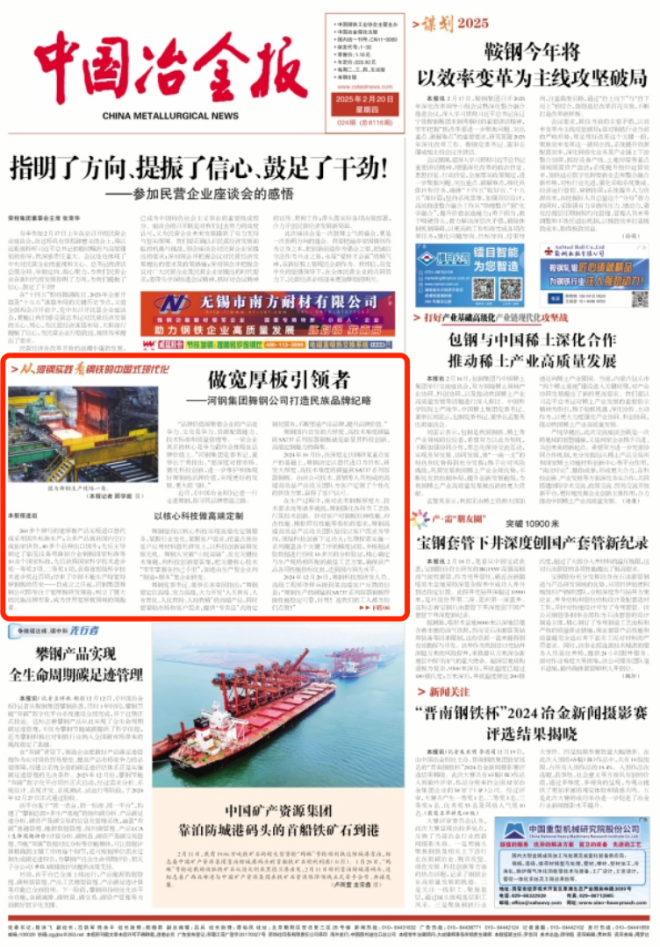 2025年,舞鋼將深入貫徹河鋼集團工作部署,堅定走特鋼精品路線,深化“貼近市場、貼近客戶”理念,深入推進技術營銷模式,深耕下遊重點行業,不斷鞏固舞鋼在寬厚板領域的領先地位,提升舞鋼品牌價值。