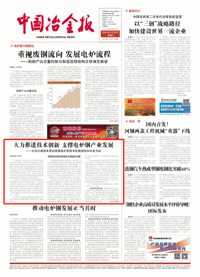 大力推進技術創新 支撐電爐鋼產業發展——北科大教授朱榮談我國電爐鋼技術發展現狀和未來方向
