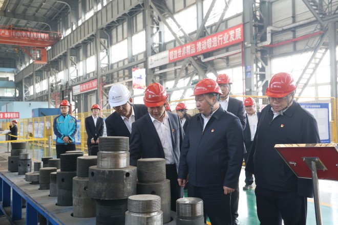 圖為袁斯浪前往中冶重工唐山公司生產一線開展調研