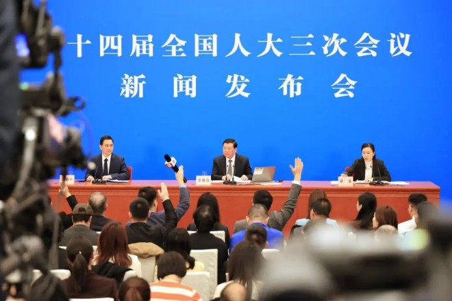 3月4日12時,十四屆全國人大三次會議在北京人民大會堂舉行新聞發布會,大會發言人婁勤儉回答中外記者提問