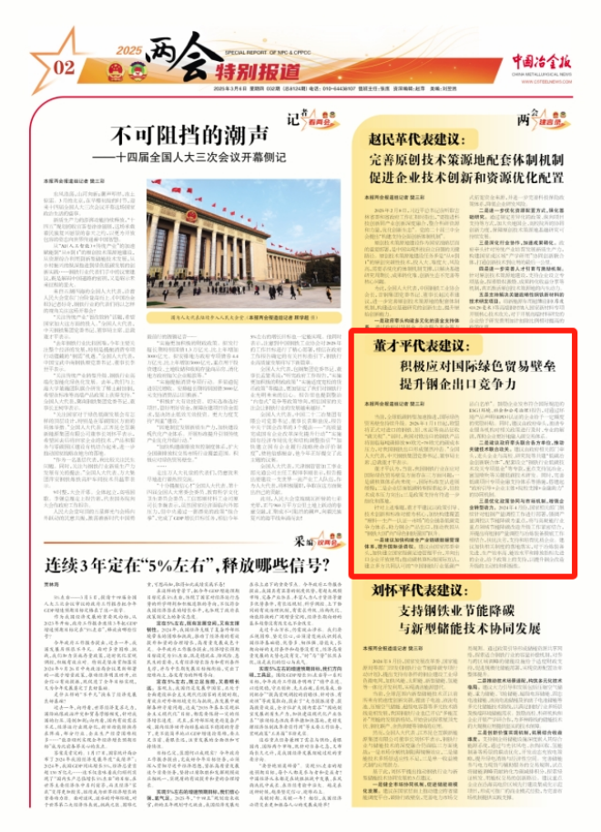 兩會建言|董才平代表建議:積極應對國際綠色貿易壁壘 提升鋼企出口競爭力