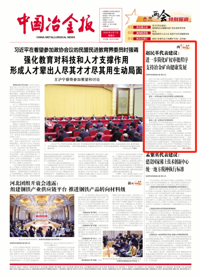 兩會建言 | 趙民革代表建議:進一步簡化礦權審批程序 支持冶金礦山健康發展