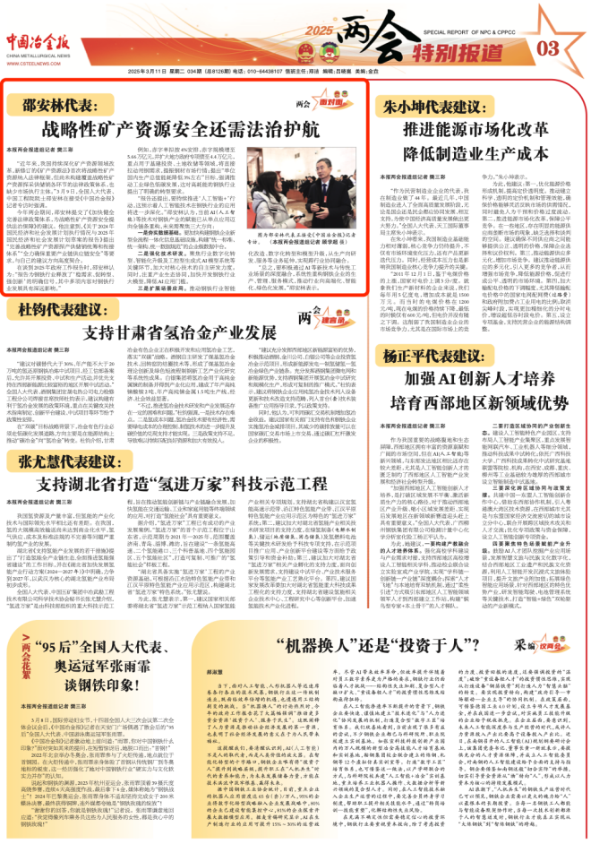 在談到2025年政府工作報告時,邵安林認為:“報告為鋼鐵行業釋放了‘穩需求、促轉型、強創新’的明確信號,其中多項內容對鋼鐵行業發展具有深遠影響。”