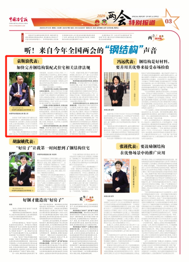 兩會麵對麵 | 袁斯浪代表:加快完善鋼結構裝配式住宅相關法律法規