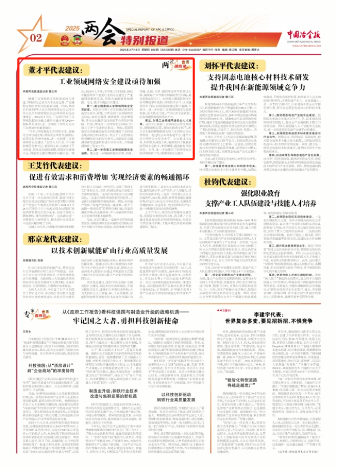 兩會建言 | 董才平代表建議:工業領域網絡安全建設亟待加強