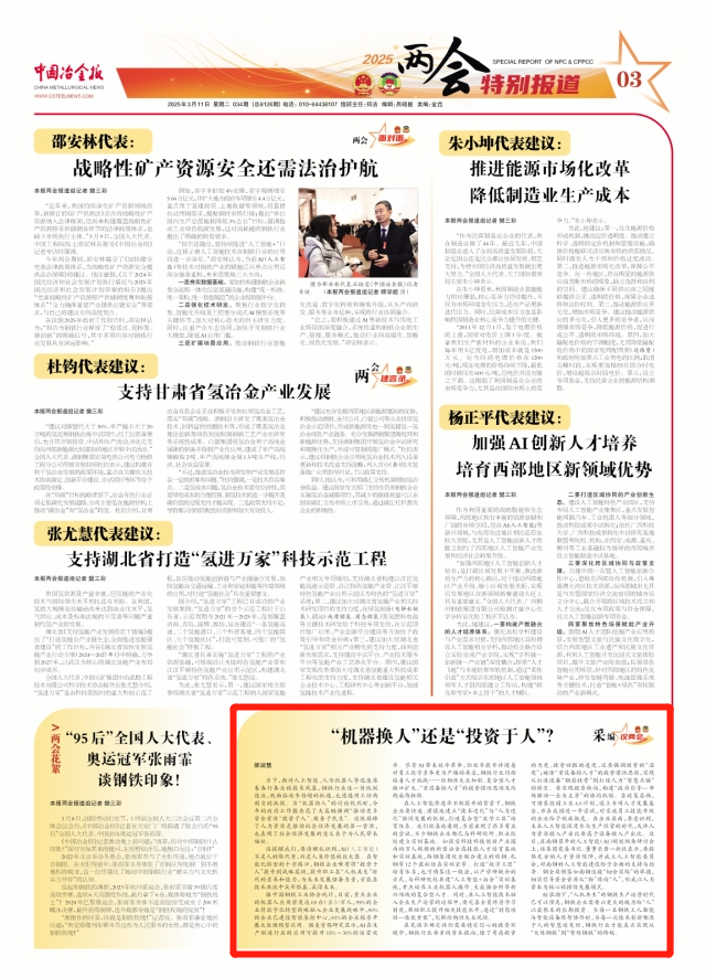 當下,麵對人工智能、人形機器人等迅速席卷各行各業的技術風暴,鋼鐵行業這一傳統製造業,既麵臨效率倍增的機遇,也遭遇用工結構劇變的挑戰。當“機器換人”的討論熱烈時,今年的政府工作報告花了大篇幅強調“推動更多資金資源‘投資於人’、服務於民生”。這既闡釋了人力資源是推動社會經濟發展的第一資源,也表明了社會經濟發展的意義在於為人民帶來福祉。