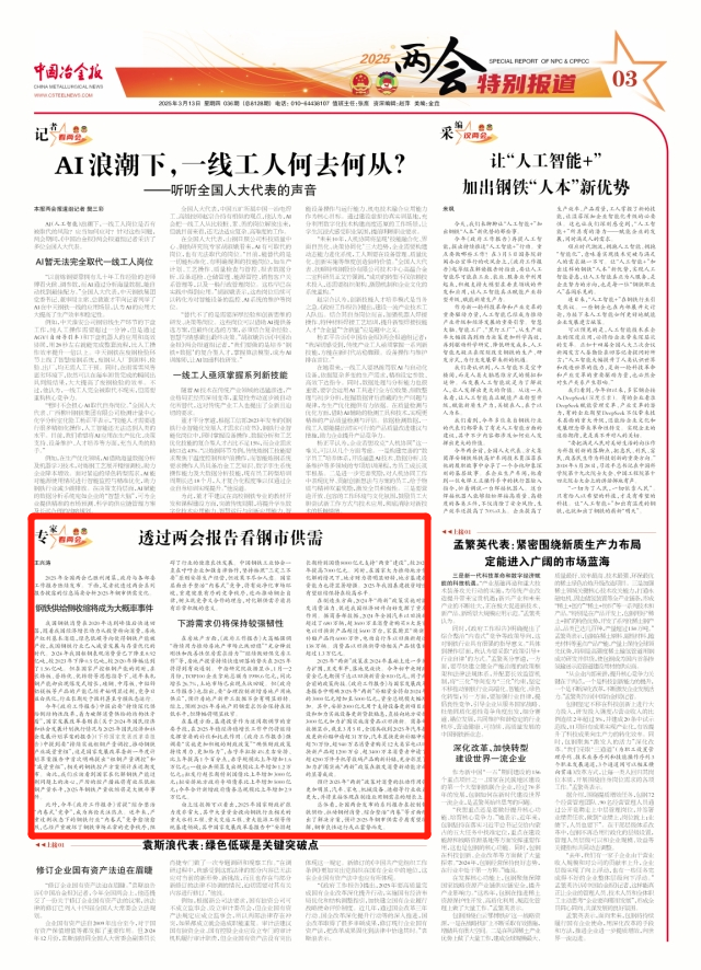 總體看,全國兩會發布的係列報告在控製鋼鐵供給、拉動鋼材消費、綜合整治“內卷”等方麵給出了解決方案,預計2025年鋼市供需矛盾有望緩解,鋼市良性運行或正蓄勢而發。(王興濤)