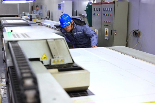 圖為大河金屬新材公司家電一部工作人員正在檢查產品質量
