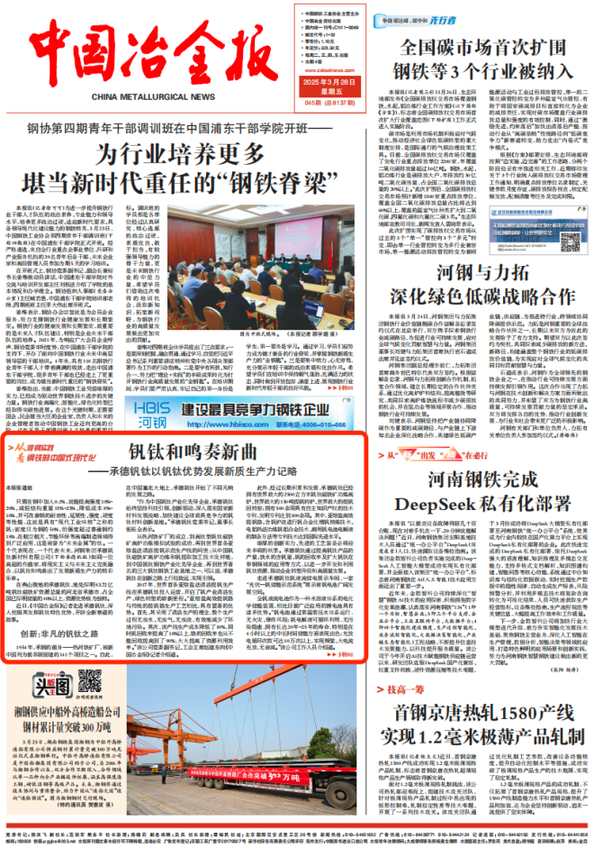 近日,《中國冶金報》記者走進承德釩鈦,深入挖掘其發揮釩鈦特色優勢,開辟全新賽道的故事。