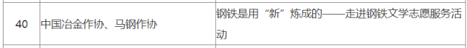 中國冶金作協、馬鋼作協的“鋼鐵是用‘新’煉成的”文學誌願服務項目入選。
