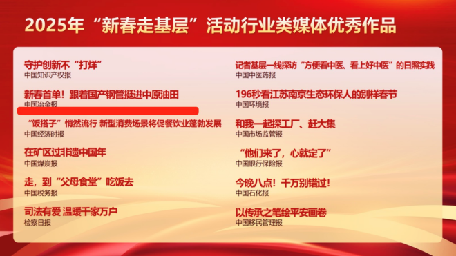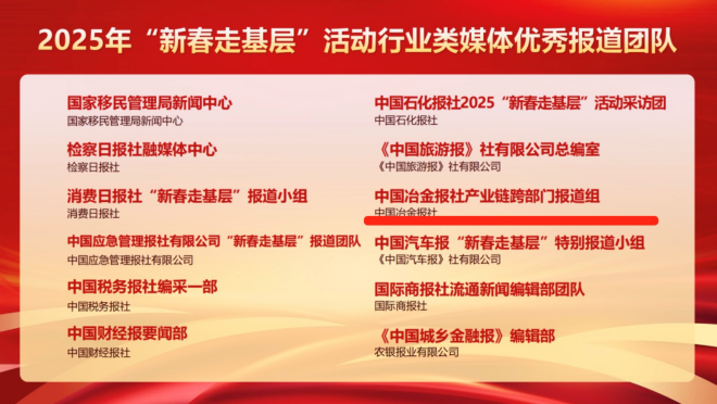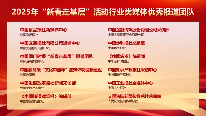 4月27日,中國行業報協會發布了行業類媒體2025年“新春走基層”活動優秀作品和優秀報道團隊、個人名單。對30個行業類媒體優秀報道團隊、60名行業類媒體優秀個人、60件行業類媒體優秀作品進行推介。