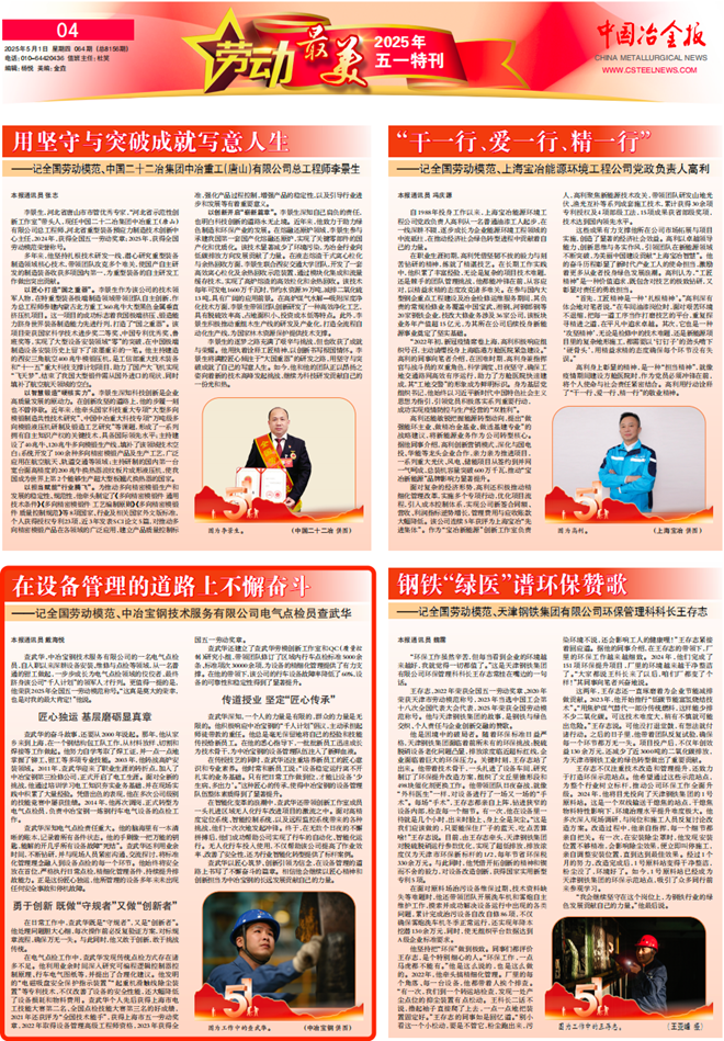查武華,中冶寶鋼技術服務有限公司的一名電氣點檢員,自入職以來深耕設備安裝、維修與點檢等領域,從一名普通的鉗工做起,一步步成長為電氣點檢領域的佼佼者,最終躋身該公司“千人計劃”的領軍人才行列。更值得一提的是,他榮獲2025年全國五一勞動模範稱號。“這真是莫大的榮幸,也是對我的最大肯定!”他說。