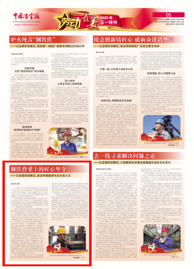 conghaerbinshilaodongmofandaoheilongjiangshengrendadaibiao,congquanguowuyilaodongjiangzhanghuodezhezaidaoquanguolaodongmofan,changdaweishizhongbaochizhechanyegongrendebense。zuoweiheilongjiangshengrendadaibiao,tajingchangbayixiangongrendexinshengdaidaohuishang;作為技術帶頭人,他帶領團隊製訂了23項標準化操作規程。但最讓他自豪的,還是每天都能站在煉鋼爐前,看著火紅的鋼水奔流而出。“鋼鐵是國家的脊梁,我們工人就是鑄造脊梁的人。”常大為說這話時,眼神中閃爍著堅定的光芒。