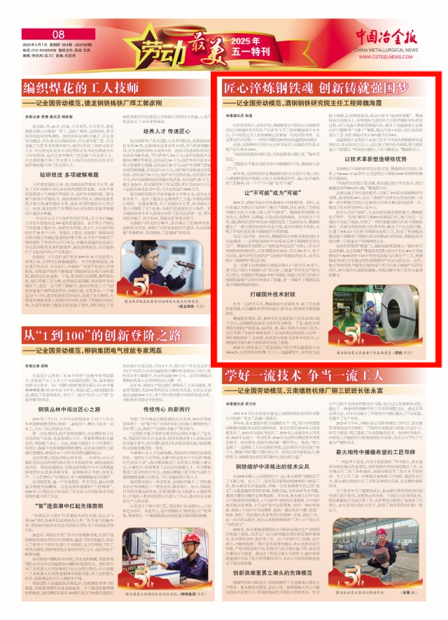 匠心淬煉鋼鐵魂 創新鑄就強國夢——記全國勞動模範、酒鋼鋼鐵研究院主任工程師魏海霞