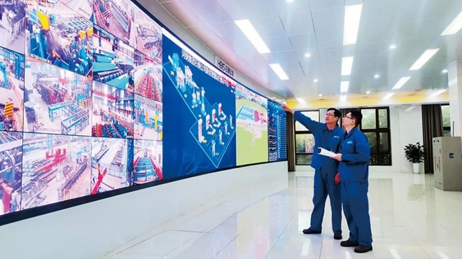 河鋼集團石鋼公司持續發展壯大智能製造矩陣,入選全國首批“數字領航”企業和首批卓越級智能工廠。圖為石鋼安全生產管控中心。