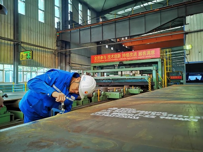 “我接觸鞍鋼產品12年了。鞍鋼產品的外在質量和內在力學性能優勢明顯,無論是鋼板的整體平直度、脫方度,還是翹曲度,表現得都非常優異。這為我們銑邊、成型以及後期打水壓和焊接成型等一係列工作提供了保障。”張偉向筆者介紹道。