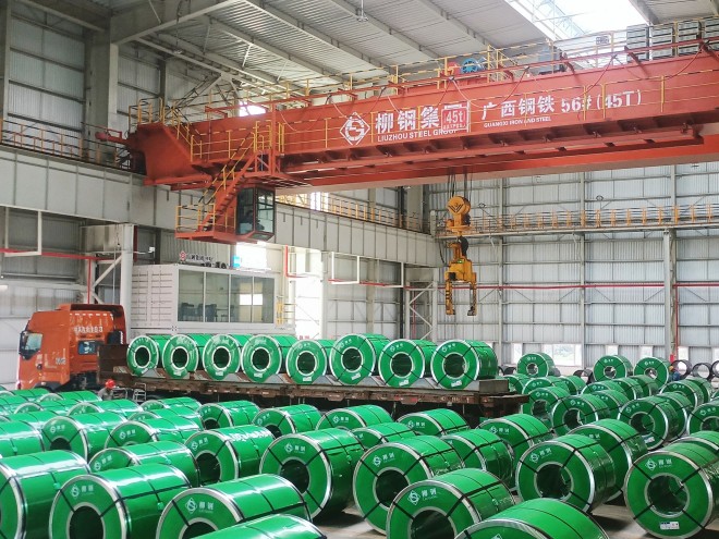 圖為柳鋼集團廣西鋼鐵冷軋酸洗產品整裝待發。(鄒華勇 攝)