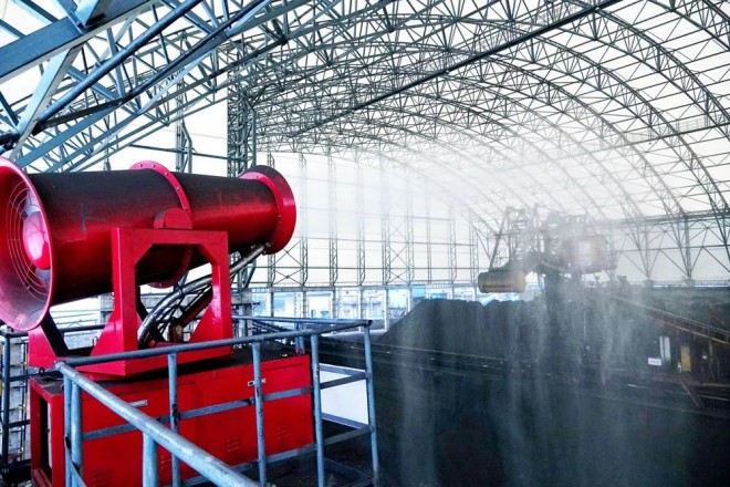 柳鋼焦化廠原料料場內投用的霧炮係統,不間斷地淨化著廠區空氣。黃津 攝
