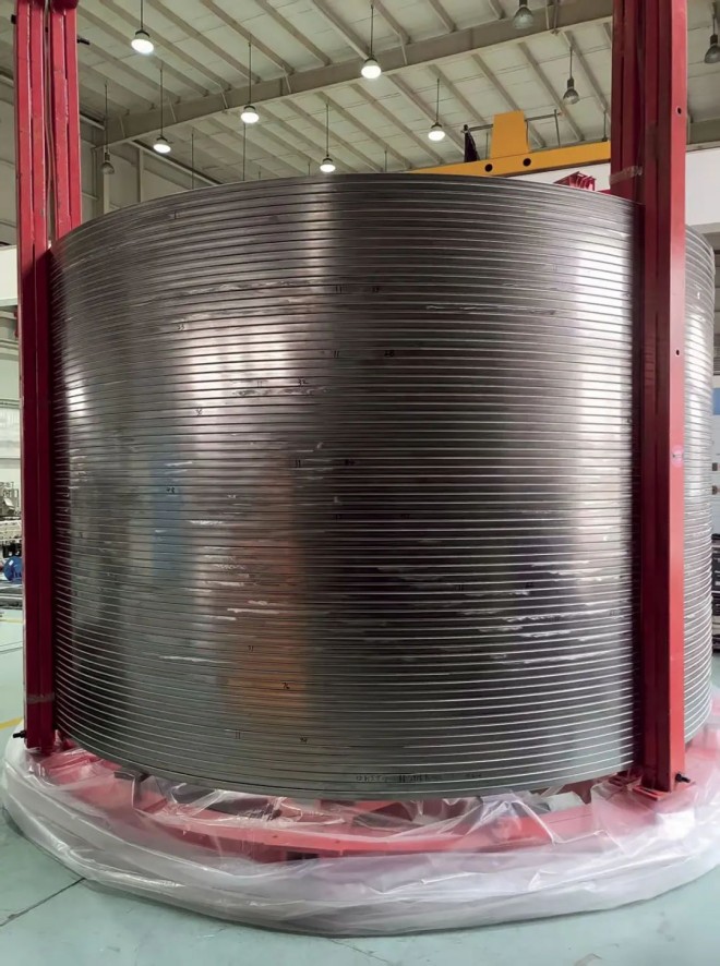 在應用拓展方麵,自2024年1月份首次批量供貨10噸起,1年內即實現向BEST裝置百噸級批量供貨。其中,總重約300噸的CHSN01不鏽鋼鎧甲已完成超22588米交付(總需求量約52438米),占總需求的43%;總重約200噸的CHSN01線圈盒直線段部件完成交付3套(總需求量為17套)。如今,其應用版圖正從BEST裝置核心部件,快速拓展至航天深低溫貯箱、氫能儲運裝備等市場,引起法國原子能委員會(CEA)、德國卡爾斯魯厄理工學院(KIT)等國際頂尖機構的關注。
