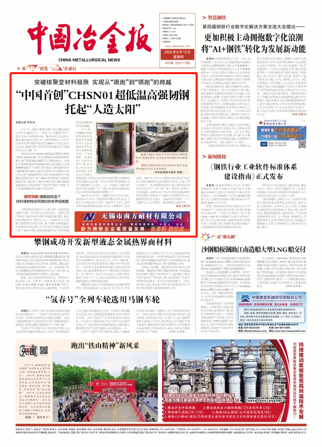 破解世界級難題 “中國首創”CHSN01超低溫高強韌鋼托起“人造太陽”