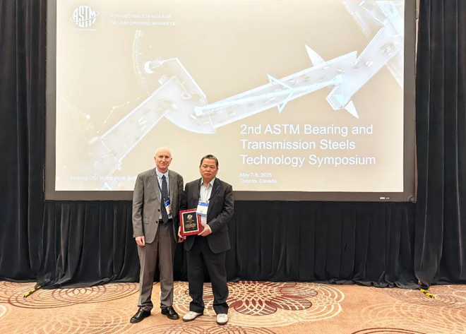 2025年5月7日至8日,中信泰富特鋼技術專家團隊赴加拿大多倫多,參加ASTM(美國材料與試驗協會)組織的國際軸承與傳動會議,並受ASTM主席Aidan Kerrigan邀請,攜航空軸承鋼原創技術作主題報告,在歐美頭部軸承製造企業與科研機構麵前,展現了中國軸承鋼的實力。