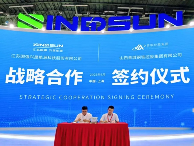 6月11日—13日,在SNEC第十八屆國際太陽能光伏與智慧能源(上海)大會暨展覽會上,晉鋼控股集團與江蘇國強興晟能源科技股份有限公司正式簽訂戰略合作協議。