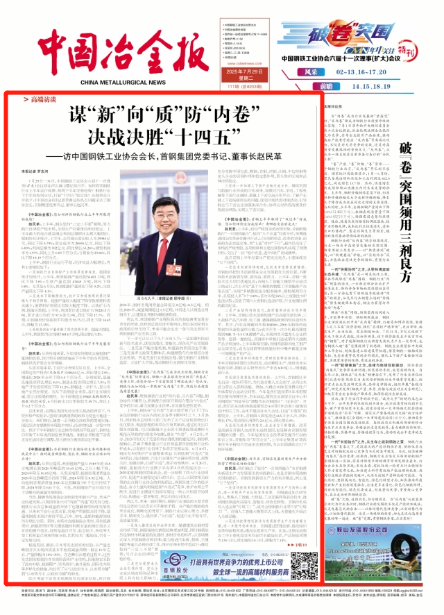 謀“新”向“質”防“內卷” 決戰決勝“十四五”——訪中國鋼鐵工業協會會長,首鋼集團黨委書記、董事長趙民革